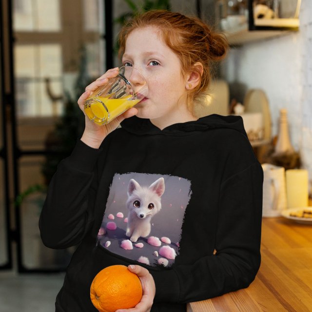 Fox Print Kids’ Sponge Fleece Hoodie – Cute Flower Kids’ Hoodie – Printed Hoodie for Kids