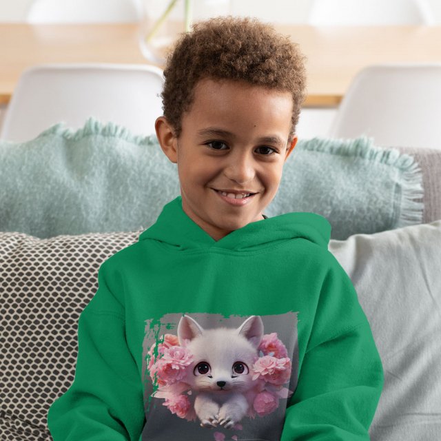 Fox Toddler Hoodie – Floral Toddler Hooded Sweatshirt – Kawaii Kids’ Hoodie