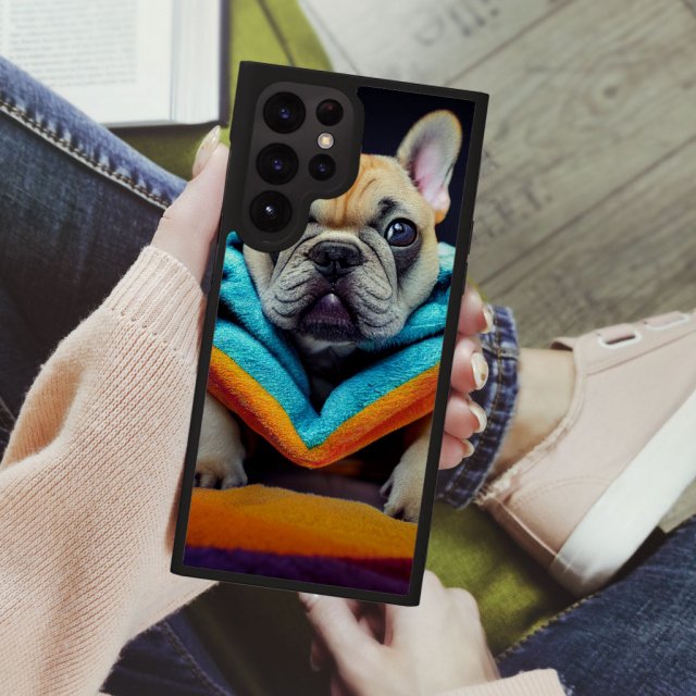 French Bulldog Samsung S22 Ultra Phone Case is made of high-quality soft TPU material, it provides good protection against bumps and scratches. Easy to install and remove. Anti-slip stripes on the sides protect the phone from falling.