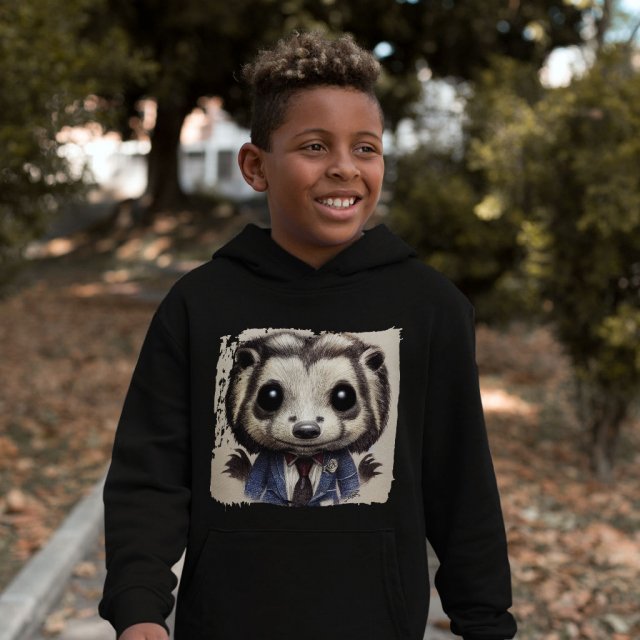 Funny Badger Kids’ Sponge Fleece Hoodie – Animal Design Kids’ Hoodie – Cute Graphic Hoodie for Kids