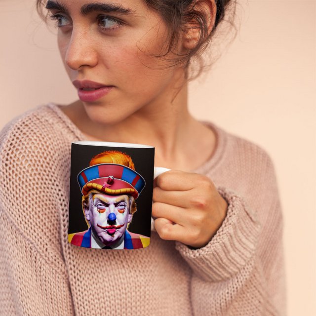 Funny Clown Mug with Heart Handle – Cool Art Mug – Graphic Ceramic Mug
