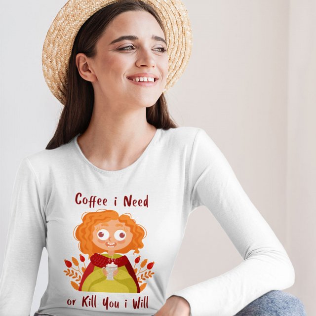 Funny Coffee Long Sleeve T-Shirt – Autumn T-Shirt – Illustration Long Sleeve Tee Shirt