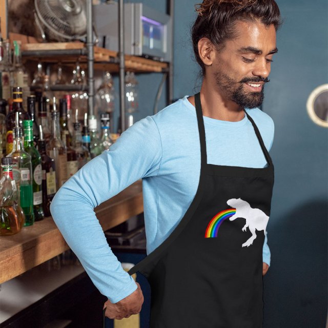 Funny Dinosaur Apron – Rainbow Cooking Apron – Silhouette Apron for Men for Women