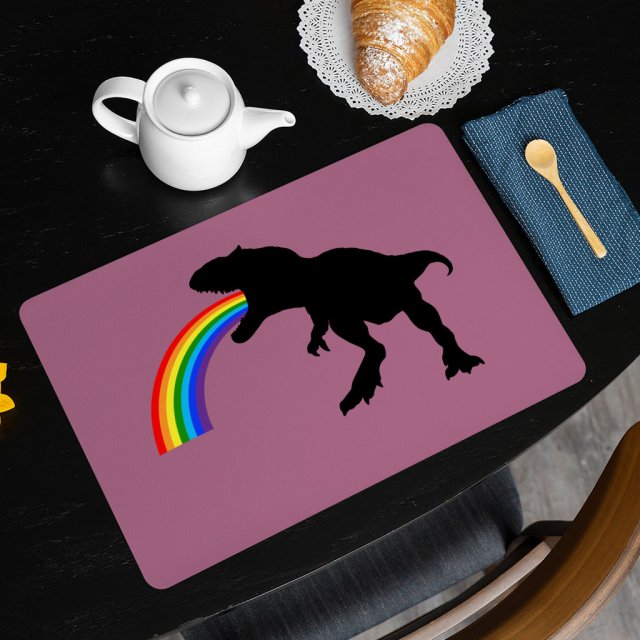 Funny Dinosaur Placemats 2 PCS – Rainbow Placemats for Kitchen Table – Silhouette Table Mats