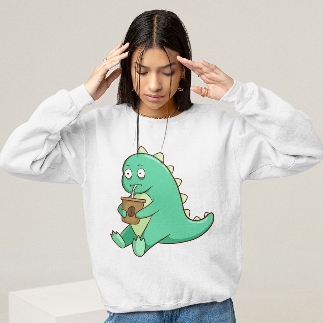 Funny Dinosaur Sweatshirt – Coffee Crewneck Sweatshirt – Creative Sweatshirt