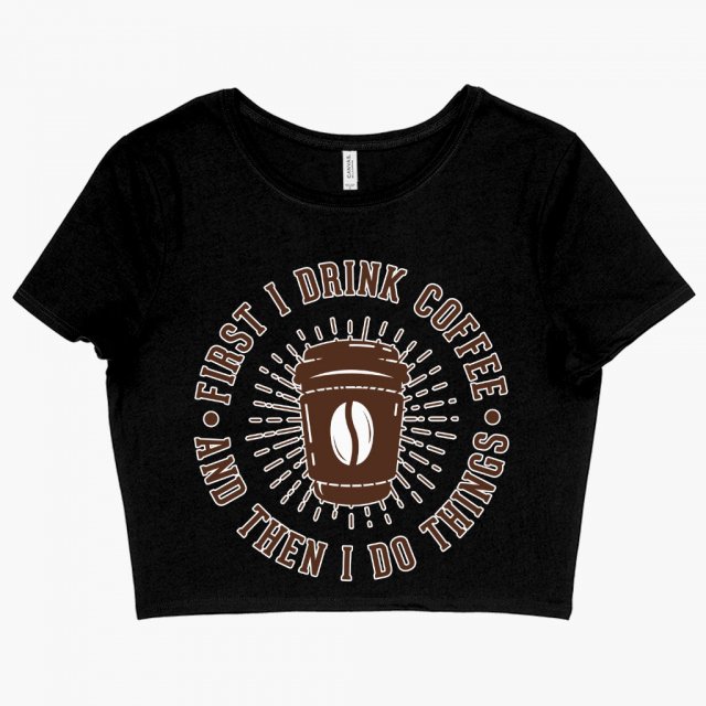 Funny Dinosaur Women’s Cropped T-Shirt – Coffee Crop Top – Creative Crop Tee Shirt