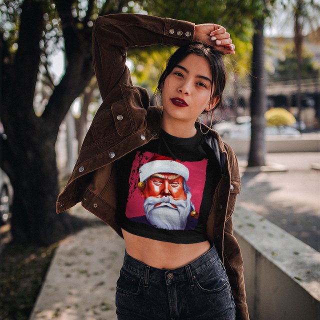 Looking for something unique in a cropped T-shirt? Check out Trump Claus. This shirt is form-fitting and has a silhouette that will show off your figure. Whether you’re pairing it with jeans or shorts, Christmas Art is sure to turn heads.