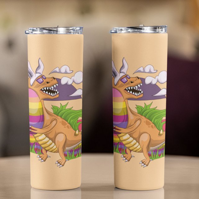 Funny Easter 20oz Skinny Tumbler – Funny Dinosaur Travel Mug – Bunny 20oz Skinny Tumbler