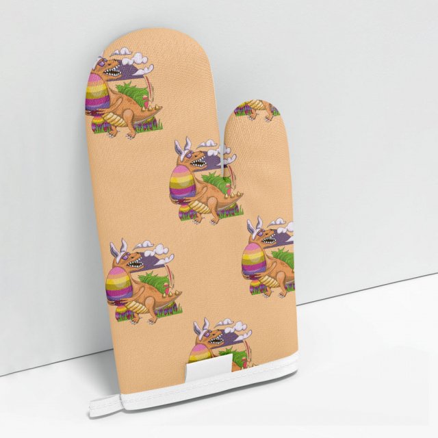 Funny Easter Oven Mitt – Funny Dinosaur Oven Glove – Bunny Cooking Gloves