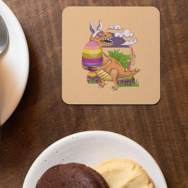 Funny Easter Square Coasters – Funny Dinosaur Coaster – Bunny Coasters for Drinks