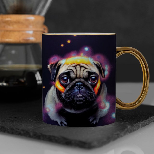Funny Pug Mug – Pet Gold Rim and Handle Mug – Graphic Mug