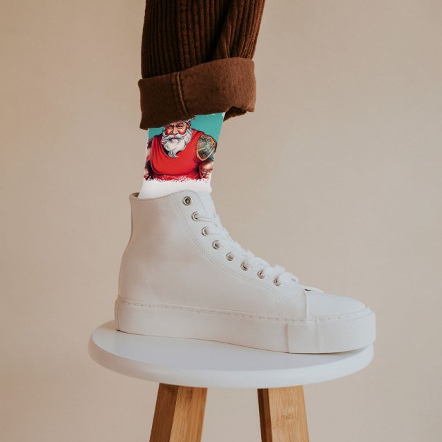 Funny Santa Claus Socks – X-Mas Novelty Socks – Art Print Crew Socks