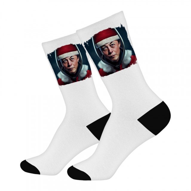 Funny Santa Socks – Elon Musk Novelty Socks – Printed Crew Socks