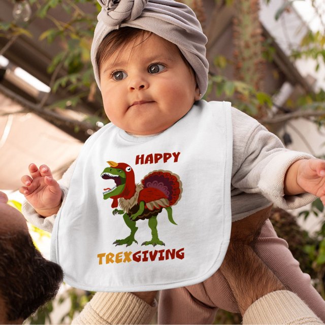 Funny Thanksgiving Baby Bibs – T-Rex Baby Feeding Bibs – Holiday Bibs for Eating