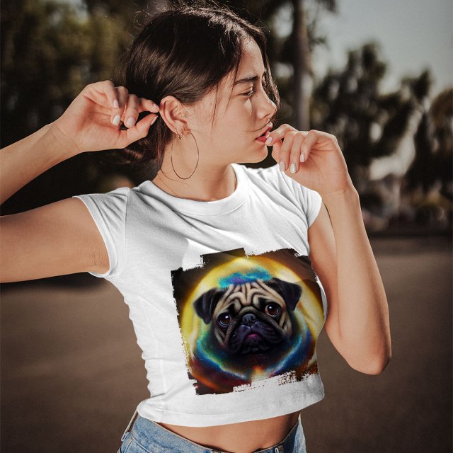 Looking for something unique in a cropped T-shirt? Check out Pug. This shirt is form-fitting and has a silhouette that will show off your figure. Whether you’re pairing it with jeans or shorts, Space is sure to turn heads.