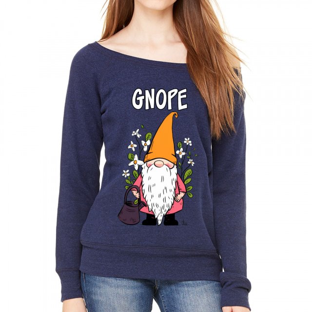 Garden Gnome Wide Neck Sweatshirt is the perfect gift choice for your girlfriend, wife, mother, sisters, or friends on any celebration.