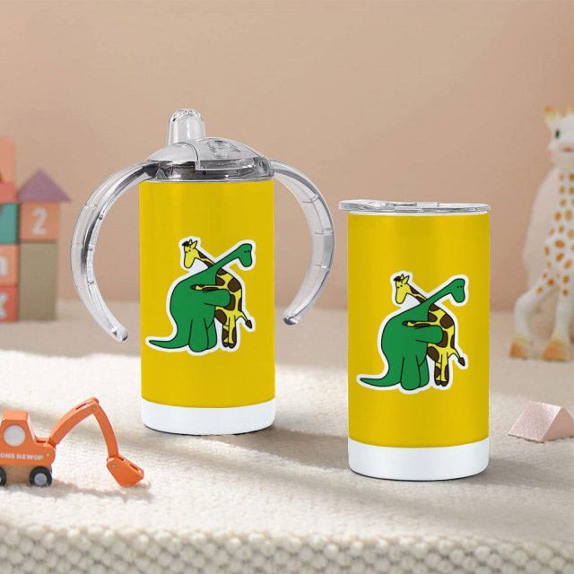 Giraffe Hugging Dinosaur Sippy Cup – Cute Baby Sippy Cup – Hug Sippy Cup