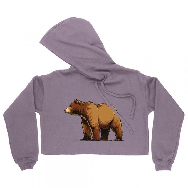 Grizzly Bear Women’s Cropped Fleece Hoodie – Animal Cropped Hoodie for Women – Graphic Hooded Sweatshirt