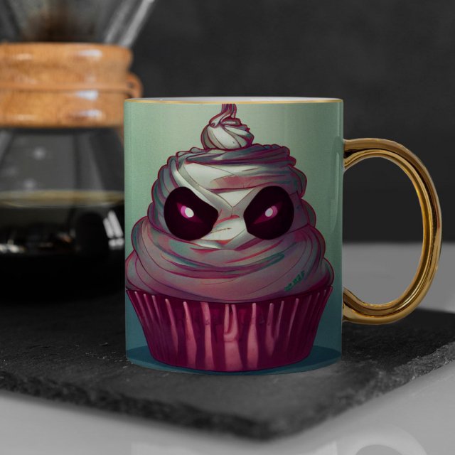 Halloween Mug – Cupcake Design Gold Rim and Handle Mug – Cool Mug