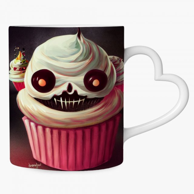 Halloween Mug with Heart Handle – Cupcake Design Mug – Cool Ceramic Mug