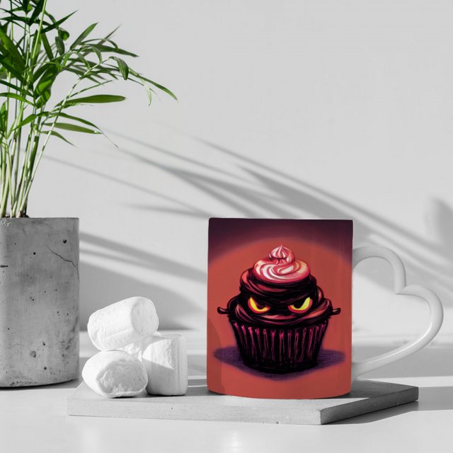 Halloween Themed Mug with Heart Handle – Cake Design Mug – Cool Design Ceramic Mug