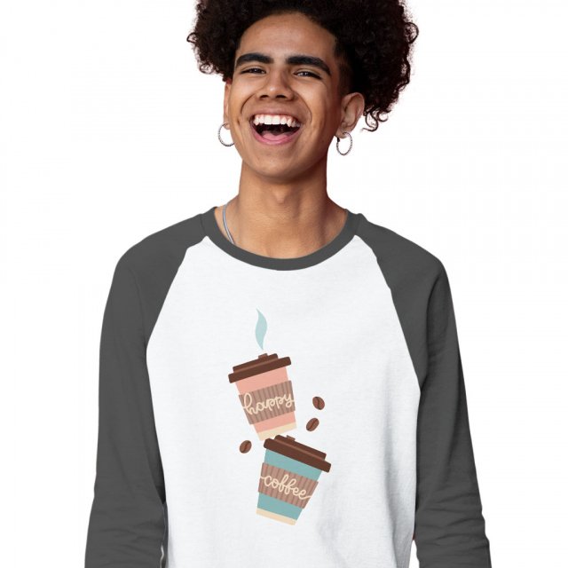 Happy Coffee Baseball T-Shirt – Cute T-Shirt – Positive Tee Shirt