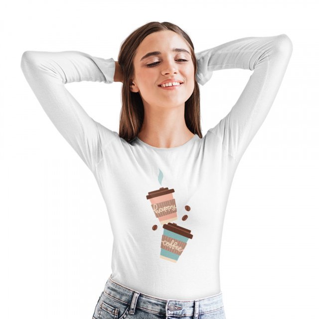 Happy Coffee Long Sleeve T-Shirt – Cute T-Shirt – Positive Long Sleeve Tee Shirt