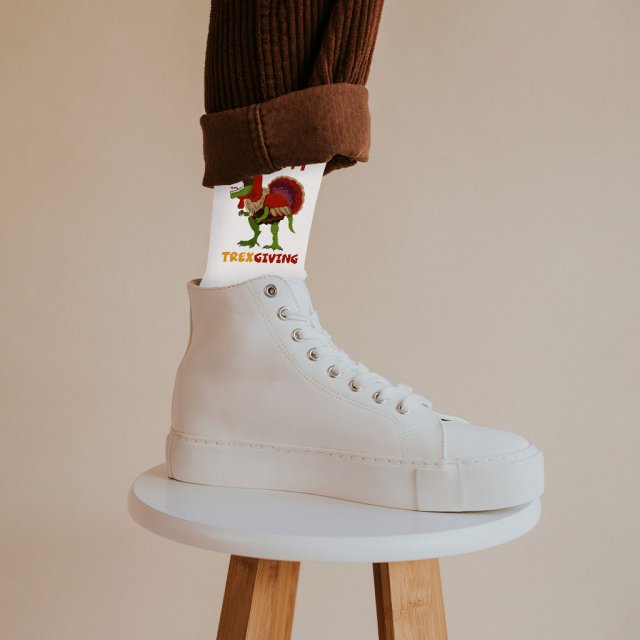 Happy Thanksgiving Socks – Funny Dinosaur Novelty Socks – Holiday Crew Socks