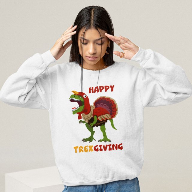 Happy Thanksgiving Sweatshirt – Funny Dinosaur Crewneck Sweatshirt – Holiday Sweatshirt