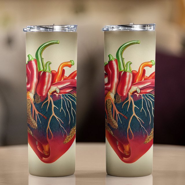 Heart 20oz Skinny Tumbler – Bell Pepper Travel Mug – Printed 20oz Skinny Tumbler