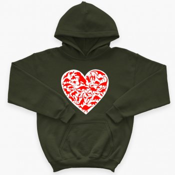 Animal Print Heart Kids’ Sponge Fleece Hoodie – Love Kids’ Hoodie – Animals Hoodie for Kids