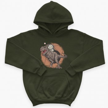 Cat Riding T Rex Kids’ Sponge Fleece Hoodie – Kawaii Kids’ Hoodie – Cool Design Hoodie for Kids