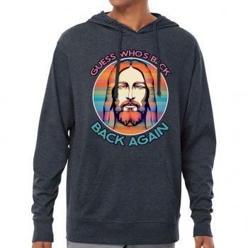 Funny Christian Lightweight Jersey Hoodie – Back Again Hooded Pullover – Religious Print Hoodie