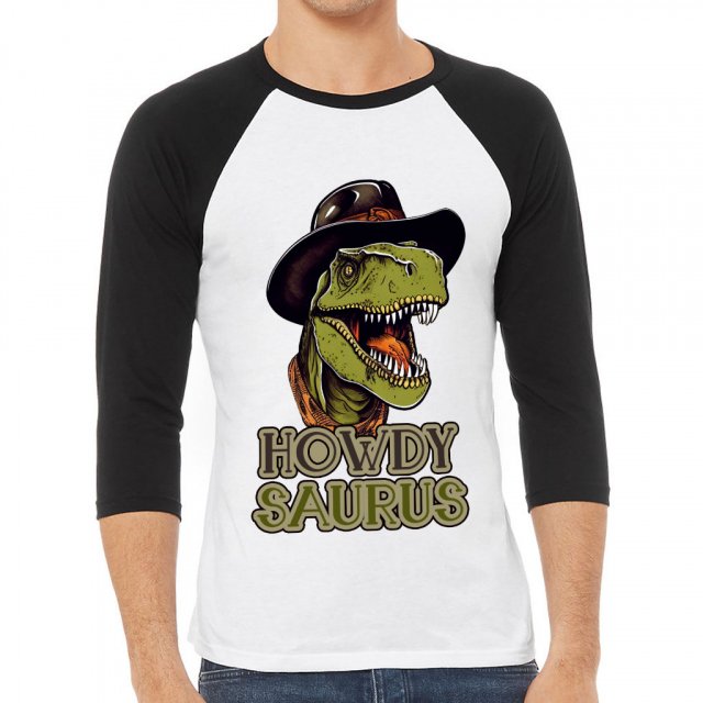 Howdy Saurus Baseball T-Shirt – Unique T-Shirt – Dinosaur Baseball Tee