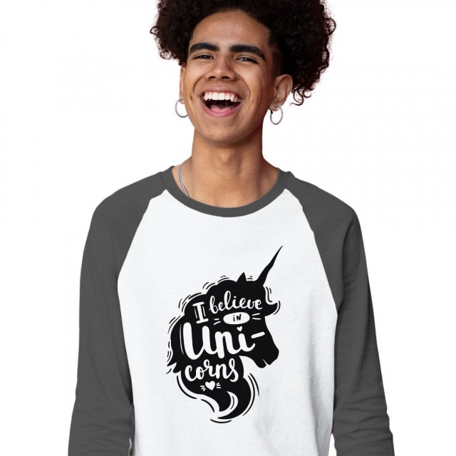 I Believe In Unicorns Baseball T-Shirt – Silhouette T-Shirt – Magic Tee Shirt