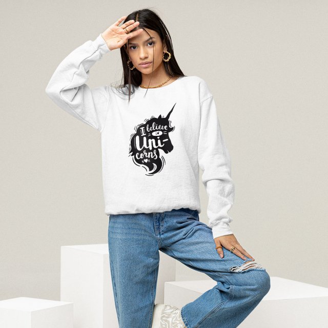 I Believe In Unicorns Sweatshirt – Silhouette Crewneck Sweatshirt – Magic Sweatshirt