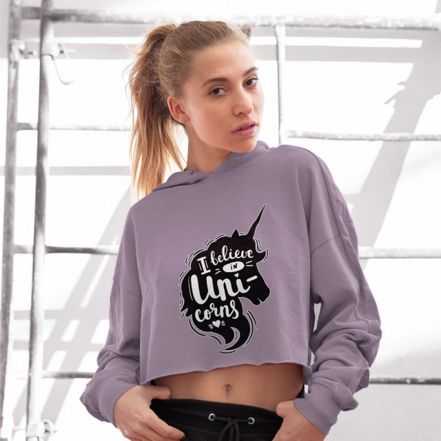 I Believe In Unicorns Women’s Cropped Fleece Hoodie – Silhouette Cropped Hoodie for Women – Magic Hooded Sweatshirt