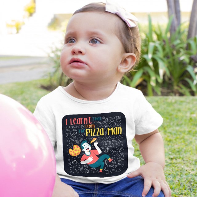 I Learned That From The Pizza Man Baby Jersey T-Shirt – Illustration Baby T-Shirt – Themed T-Shirt for Babies