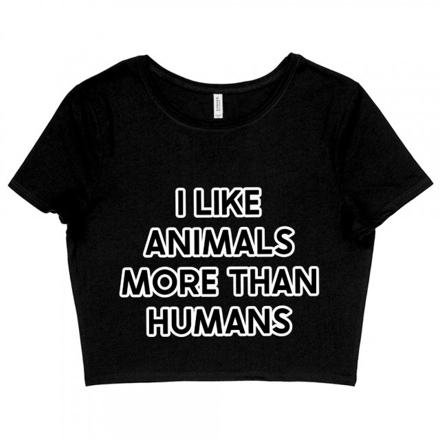 I Like Animals More Than Humans Women’s Cropped T-Shirt – Text Design Crop Top – Animal Lover Crop Tee Shirt