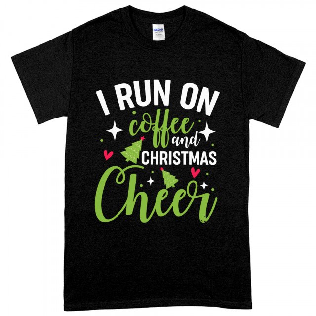 I Run On Coffee And Christmas Cheer Heavy Cotton T-Shirt – Christmas Tree Tee Shirt – Holiday T-Shirt