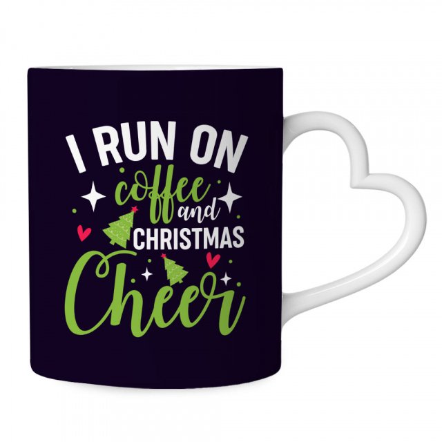 I Run On Coffee And Christmas Cheer Mug with Heart Handle – Christmas Tree Mug – Holiday Ceramic Mug