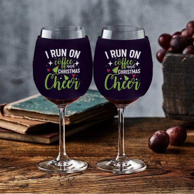 I Run On Coffee And Christmas Cheer Wine Glass Sleeve – Christmas Tree Sleeves for Wine Glass – Holiday Wine Glass Sleeve