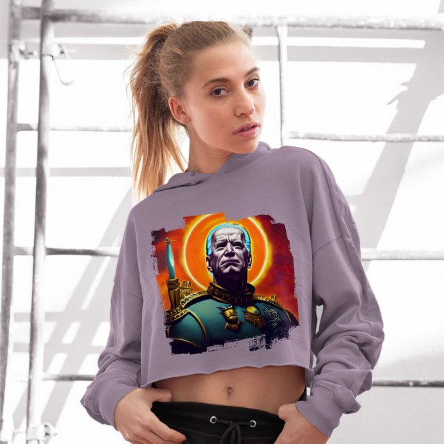 Joe Biden Women’s Cropped Fleece Hoodie – God Emperor Cropped Hoodie for Women – Graphic Hooded Sweatshirt