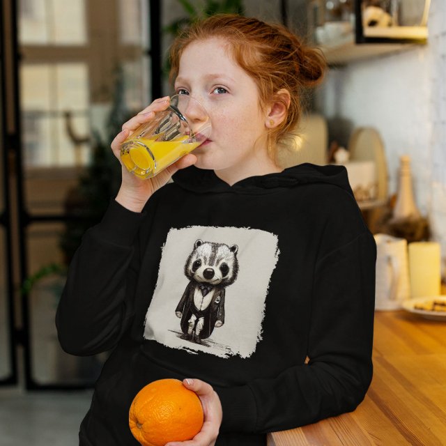 Kawaii Animal Kids’ Sponge Fleece Hoodie – Badger Kids’ Hoodie – Cute Kawaii Hoodie for Kids