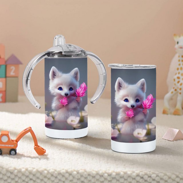 Kawaii Animal Sippy Cup – Pink Flower Baby Sippy Cup – Illustration Sippy Cup