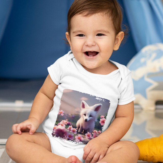 Kawaii Fox Baby Jersey Onesie – Flowers Baby Onesie – Cute Graphic Baby One-Piece