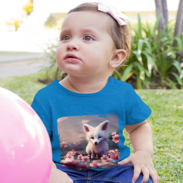 Kawaii Fox Baby Jersey T-Shirt – Flowers Baby T-Shirt – Cute Graphic T-Shirt for Babies