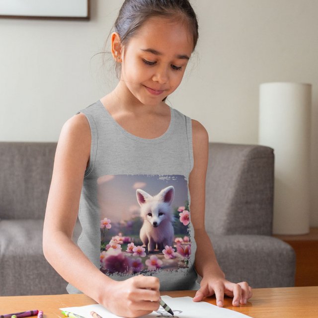 Kawaii Fox Kids’ Jersey Tank – Flowers Sleeveless T-Shirt – Cute Graphic Kids’ Tank Top