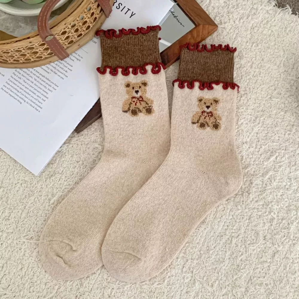 Korean Style Women’s Wool Cartoon Bear Warm Winter Socks