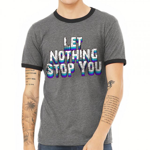 Let Nothing Stop You Ringer T-Shirt – Cool T-Shirt – Print Ringer Tee